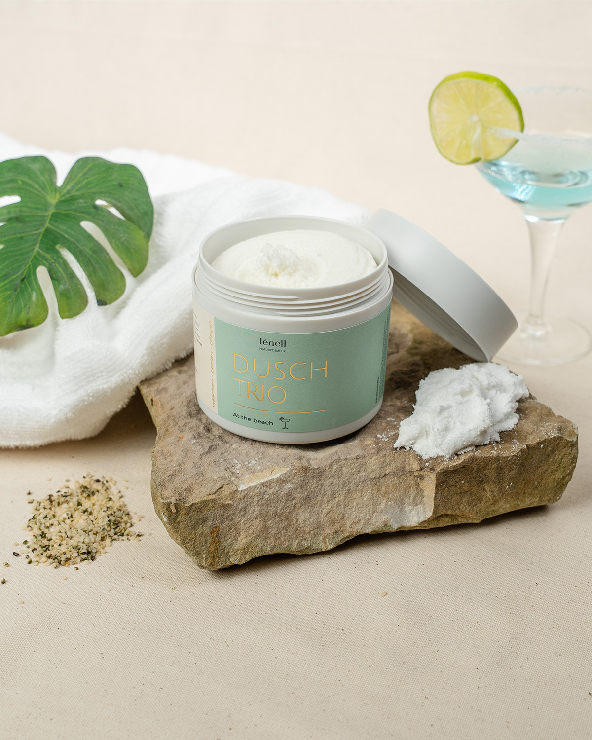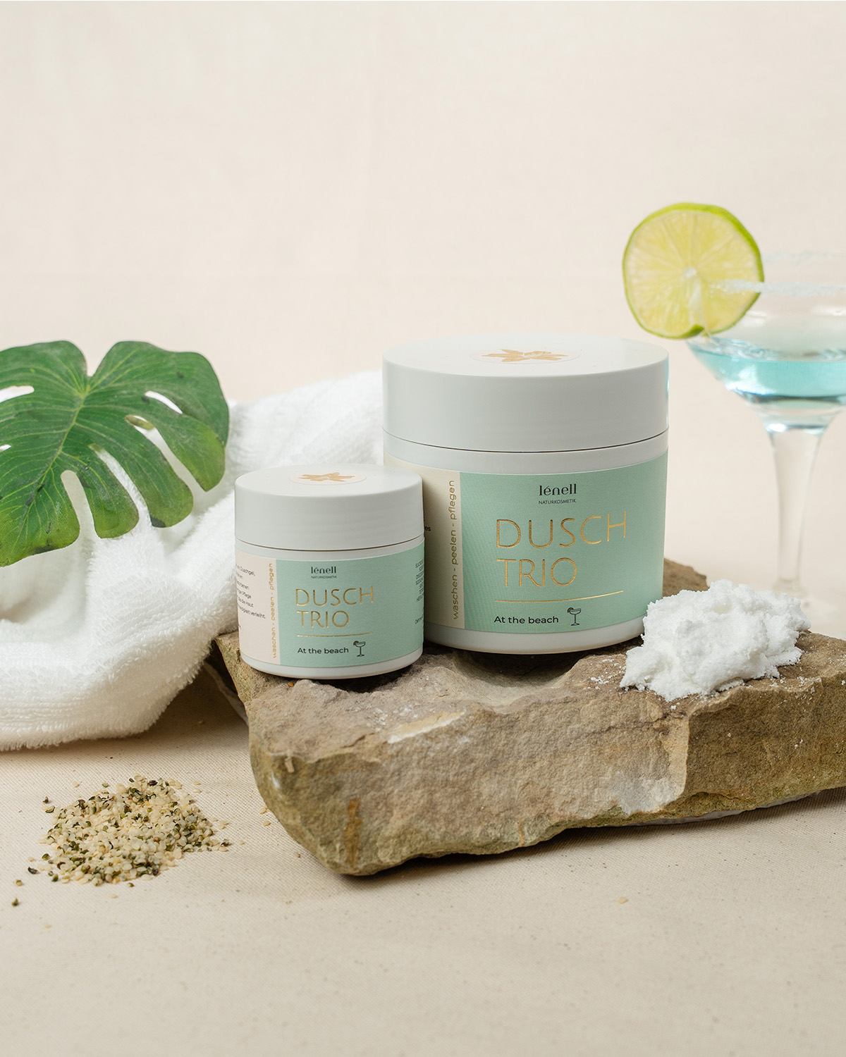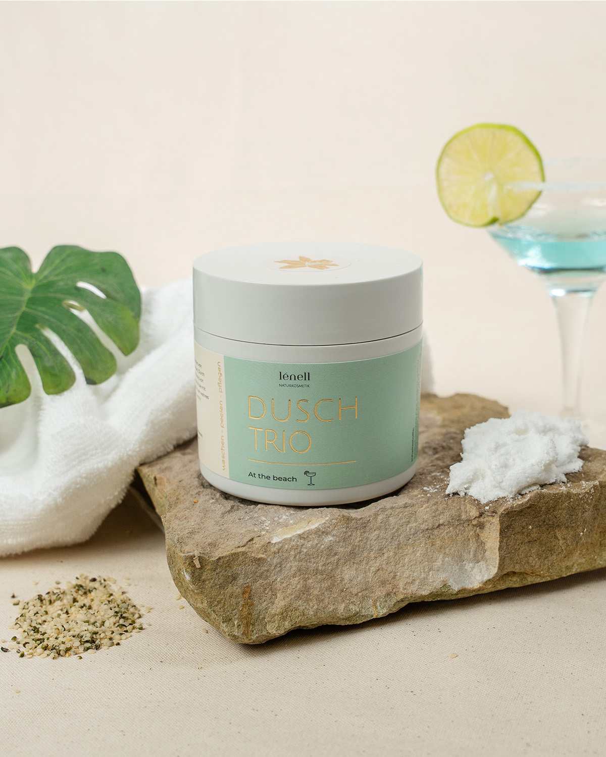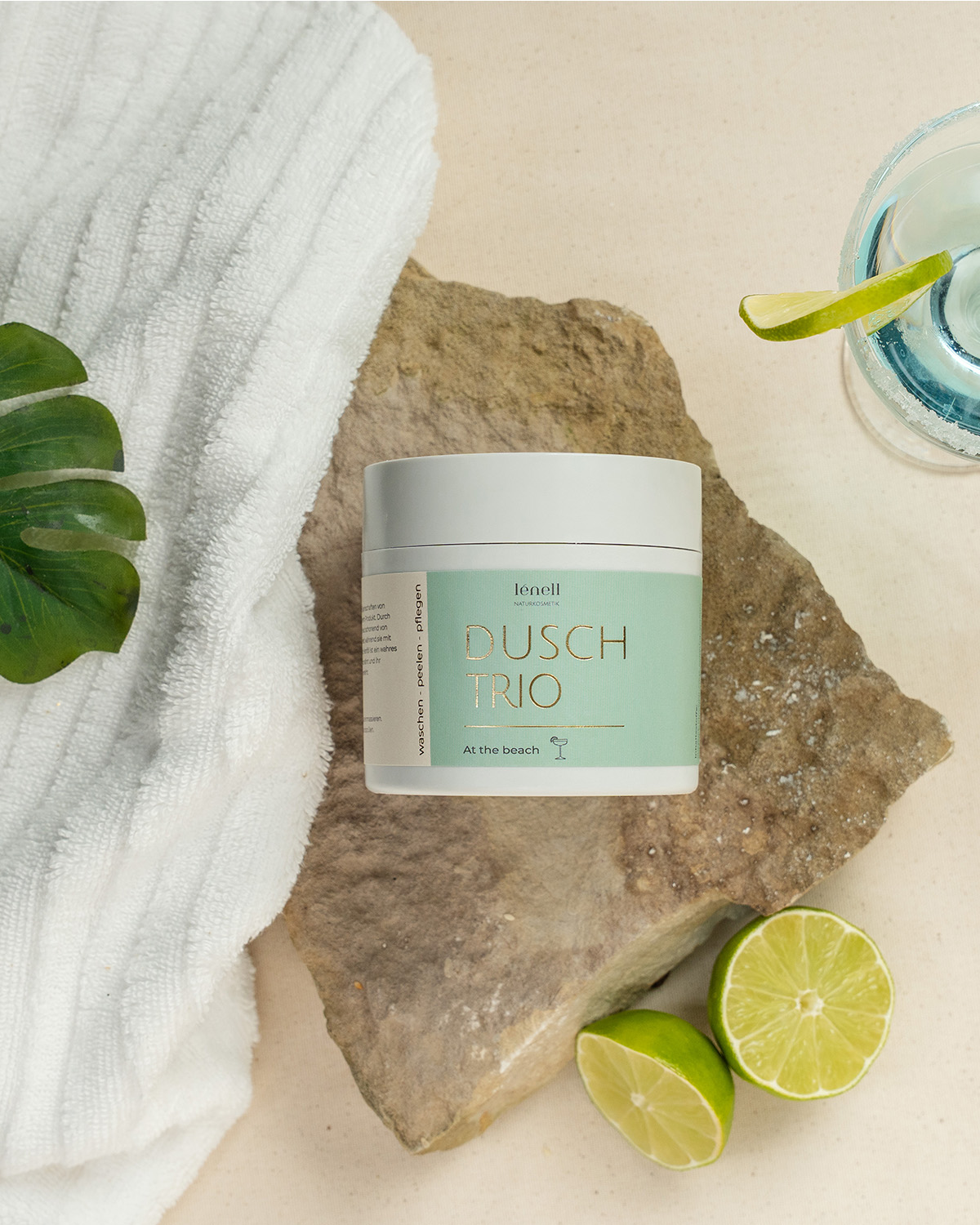 Das Dusch Trio bietet deiner Haut ein umfassendes Verwöhnprogramm. Die Kombination aus Duschgel, Peeling und Lotion sorgt für eine intensive Reinigung und Pflege in einem Schritt. Die pflegenden Inhaltsstoffe verleihen der Haut Geschmeidigkeit und Feuchtigkeit, während die Zellregeneration angeregt wird . Das Ergebnis ist eine glattere Haut mit einem gesunden, strahlenden Glanz. Tauche ein in die Welt der natürlichen Pflege und genieße jeden Moment unter der Dusche.